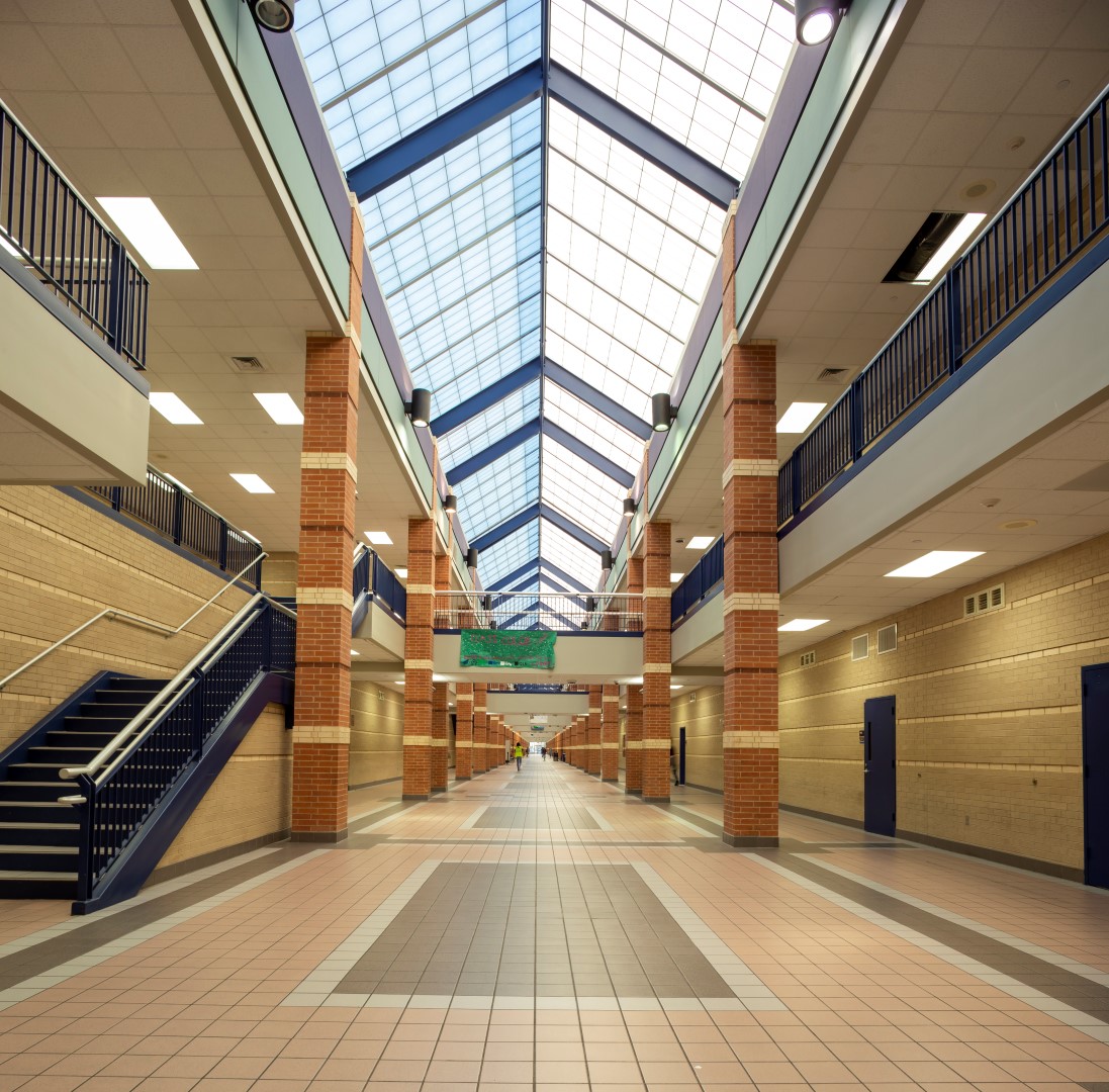 - The main building renovation includes floor tile replacements in the main corridors (1st and 2nd levels) and the cafeteria. The project scope also includes repainting all previously painted interior surfaces, casework replacements, and the installation of new acoustical ceilings. Also included in the renovation are the installation of new A/V, lighting, and control systems at the Auditorium and Black Box, new door hardware and card readers, along with security glazing improvements. The scope also includes the replacement of HVAC systems and new cap sheets for the existing modified bituminous membrane roofing.